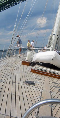 - Check anchor and rode, safety wire shackles, and proper splice in the rode with thimble and bitter end secured.